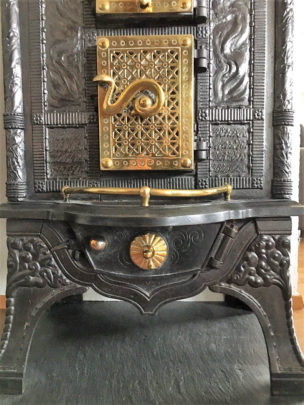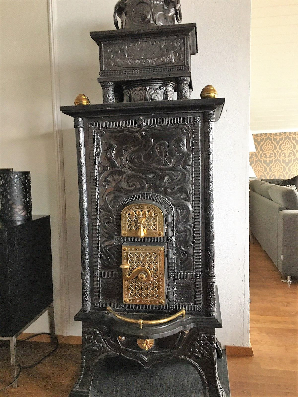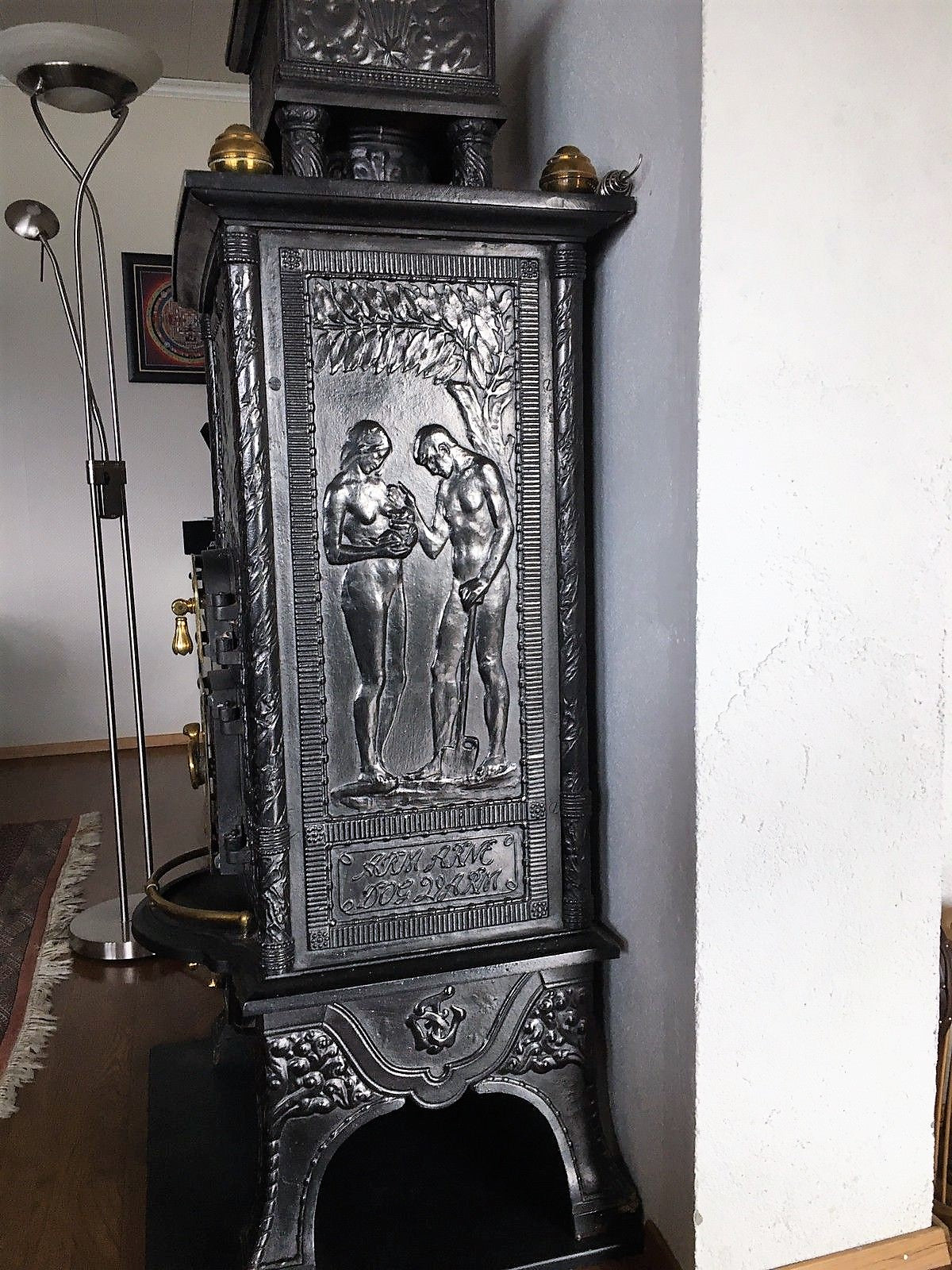 Nádherná robustní sálavá(dvouplášťová) kamna s pořádnou šamotovou vyzdívkou z produkce ARM ARNE DOG WARM z roku 1904